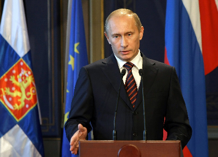 3日,俄羅斯總理普京在芬蘭首都赫爾辛基出席新聞發(fā)布會。