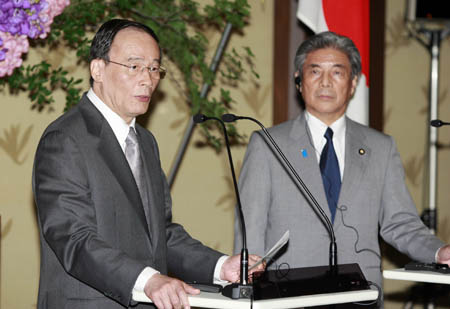第二次中日經(jīng)濟(jì)高層對話7日在日本東京閉幕。中國國務(wù)院副總理王岐山和日本外務(wù)大臣中曾根弘文在對話結(jié)束后共同會(huì)見了記者。雙方一致表示,要牢牢把握中日戰(zhàn)略互惠關(guān)系的大方向,加強(qiáng)交流,增進(jìn)共識(shí),共同推動(dòng)兩國經(jīng)貿(mào)合作不斷向前發(fā)展。
