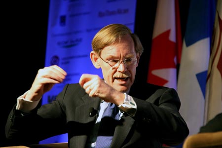 8日,在加拿大蒙特利爾,世界銀行行長佐利克在第15屆美洲國際經(jīng)濟(jì)論壇的午餐會(huì)上發(fā)表講話。新華社記者楊士龍攝 |