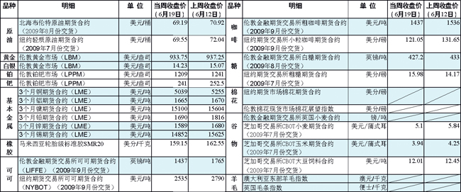 國際大宗商品期貨價格明細(xì)表