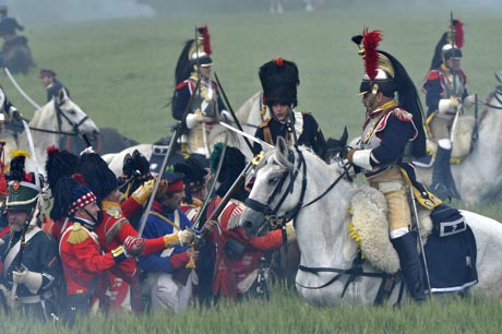 21日,比利時首都布魯塞爾南郊的滑鐵盧鎮(zhèn)舉行慶典活動,來自13個國家的1200多名演員再現(xiàn)了當年滑鐵盧戰(zhàn)役的壯麗景觀。