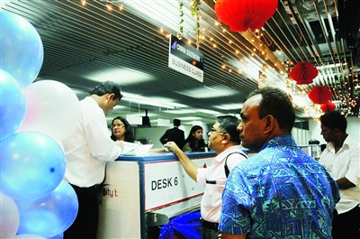 8月2日,旅客在孟加拉國首都達卡機場的中國南方航空公司柜臺前辦理登機手續(xù)。南航當日正式開通廣州至達卡的航線。8月3日凌晨,一架載有17名乘客的南航波音737-800客機抵達達卡。