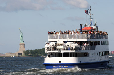 自由女神像關(guān)閉8年后重新開(kāi)放。7月4日,在美國(guó)紐約,眾多游客乘坐輪渡前往自由女神像游覽。新華社記者:劉欣
