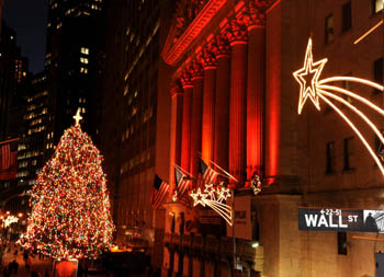 圣誕樹、霓虹彩燈等圣誕景觀給美國紐約華爾街帶來濃濃的節(jié)日氛圍。新華社記者 申宏 攝