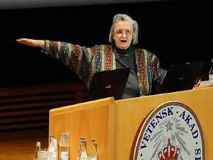 美國經(jīng)濟(jì)學(xué)家奧利弗·威廉森和埃莉諾·奧斯特羅姆因在經(jīng)濟(jì)管理分析方面所作的貢獻(xiàn)而獲得2009年諾貝爾經(jīng)濟(jì)學(xué)獎。(新華社發(fā)) |