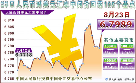 23日人民幣對(duì)美元匯率中間價(jià)回落105個(gè)基點(diǎn)