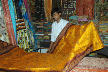 圖為印度紡織部2010年6月份在孟買世貿(mào)中心舉辦的一個(gè)手搖紡織絲織品展銷會(huì)上的情形。劉亞南