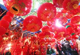 連日來,不少市民在重慶朝天 門節(jié)約街上選購年貨裝飾品。 本報記者:周衡義