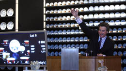 在荷蘭首都阿姆斯特丹索斯比拍賣行,拍賣師在拍賣中國清代瓷器。本報(bào)記者:謝秀棟
