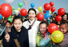 2月7日,煙臺(tái)小朋友和一名韓國旅游小姐合影留念。當(dāng)日,中韓旅游交流活動(dòng)啟動(dòng)儀式在山東煙臺(tái)濱海廣場舉行,中韓兩國旅游界人士及觀眾近千人參加了啟動(dòng)儀式。