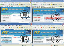 自去年以來,天津警方已經(jīng)端掉數(shù)個制販假證的窩點,收繳了大量假冒證書,而這些證書大部分都可以在網(wǎng)上查到注冊號。既然是假證書,怎么還會登錄到網(wǎng)站上呢?經(jīng)調(diào)查,發(fā)現(xiàn)這是一個“騙中有騙、假中有假”的圈套。 辦案警察說,除了域名為“www.chsi.com.cn”的“中國高等教育學(xué)生信息網(wǎng)”,其余全是假網(wǎng)站。 記者在網(wǎng)上搜索發(fā)現(xiàn)了不少有“中國高等教育學(xué)生信息網(wǎng)”中文網(wǎng)名的網(wǎng)站,其中幾個網(wǎng)站的域名為“http://www.chsi.com.cn”、“www.chs1.com.cn”、“http://www.chpos.com”、“http://www.chisi.com.cn”。與真正的“中國高等教育學(xué)生信息網(wǎng)”比較,從外觀看,真假網(wǎng)站幾乎沒有區(qū)別,從樣式到色澤甚至包括欄目、廣告、鏈接等細節(jié)都基本相同。原來,那些從假證販子手里買來的證書,根本不是注冊到教育部的學(xué)歷庫里,而是注冊到了制假證人自創(chuàng)的“克隆網(wǎng)站”中。 據(jù)犯罪嫌疑人供述,如果賣出假證不能上網(wǎng)查詢,就沒有人來買了。正是因為這些可以“上網(wǎng)驗證”,所以生意才如此“紅火”。“我們聯(lián)系了專門的仿冒網(wǎng)站,做出假證后就把號碼給他們,由他們錄入到假網(wǎng)站中!