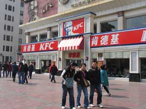 幾位市民從西安市南大街一家肯德基餐廳門前走過。 日前,陜西衛(wèi)生監(jiān)督部門發(fā)現(xiàn)多家肯德基餐廳使用“濾油粉”過濾煎炸油,“濾油粉”到底對食品安全有何影響成為西安市民關(guān)注的話題。本報記者