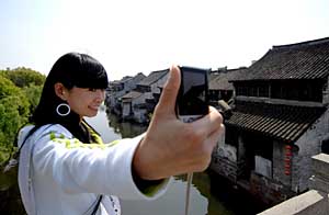 一名游客在江南古鎮(zhèn)西塘體驗浙江經(jīng)濟發(fā)展帶來的新風(fēng)貌。本報記者 王小川 攝