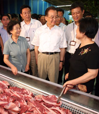 溫家寶在陜西考察生豬生產(chǎn)和豬肉供應(yīng)情況