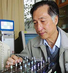 佛山市國星光電科技公司通過與蘇鏘院士領(lǐng)銜的工作室合作,其成果已成功地在廣東省關(guān)鍵領(lǐng)域重點突破項目和省重大科技項目招標中中標,并開展了佛山市第一個國家“863”計劃引導項目——大功率白光LED器件產(chǎn)業(yè)化關(guān)鍵技術(shù)研究與開發(fā)。圖為蘇鏘院士在實驗室。