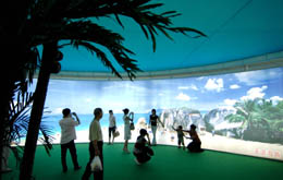 風光旖旎的海南吸引了越來越多的旅游地產(chǎn)投資者。圖為6月11日,在第四屆泛珠三角區(qū)域合作與發(fā)展論壇暨經(jīng)貿(mào)洽談會上,一些觀展游客在海南省展廳內(nèi)“天涯海角”巨幅照片前拍照。本報記者:趙眾志