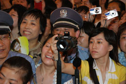2006年的一次李宇春歌迷上海見(jiàn)面會(huì)上,一位歌迷正在拍照。本報(bào)記者:裴鑫