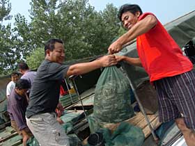 洪澤湖承轉淮河中上游15.8萬平方公里的洪水,再通過4條水道入江入海下泄。作為調蓄洪水的水庫,洪澤湖在淮河防洪中起著關鍵性的作用。 記者日前行進在洪澤湖大堤上,這道被國家明確為任何時候都要“嚴防死守”的“生命線”,保護著洪澤湖以下2000萬人的生命安全和3000萬畝耕地。在洪澤湖南岸大堤上,記者看到湖面離大堤頂部還有3米多遠,在呼呼的北風推動下,洶涌的波濤不斷拍打著堤岸,發(fā)出有節(jié)奏的轟鳴聲。正在守護大堤的周湖村村民劉光之告訴記者,村里安排了人日夜巡護大堤,雖然湖水的水位和2003年差不多,但險情卻少得多了。 7月26日,洪澤湖水位為13.69米,較25日下降0.03米,但超過警戒水位0.19米。在距離洪澤湖南岸大堤不到1000米的周湖村,記者看到,一些村民正在淘米洗菜,準備午飯。村民騰克俊告訴記者,現(xiàn)在雖然洪澤湖水位比較高,但自己并不太擔心。早在6月份,村里就開始籌集編織袋、木樁等抗洪物資。前幾天暴雨,大堤曾出現(xiàn)幾次險情,但村里的搶險隊很快解決了問題,還進一步加固了堤壩。 周湖村里的很多青年人都外出打工去了,留下的多數是老人和小孩。村民曹玉霞今年60歲了,兩個兒子都已帶著媳婦外出去打工,留下了4個孩子由她照顧,最大的8歲,最小的3歲!2003年發(fā)大水,兒子媳婦都趕回來了,可是家里還是被淹了。但今年不同,大壩修過后結實多了,入江入海水道也早早開閘泄洪,村里更是提前一個月做好了準備。所以,兒子不用回來抗洪了!