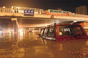 8月6日降雨,北京安華橋下積水達(dá)1.7米。 |