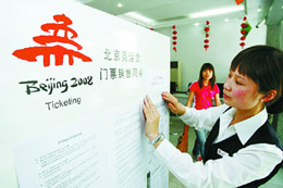 北京奧組委票務(wù)中心提示,應(yīng)通過官方途徑購買奧運(yùn)門票。(本報資料照片) | 9月12日,北京奧組委委托中國銀行開始對第一階段成功預(yù)訂奧運(yùn)門票的購票人進(jìn)行集中扣款。集中扣款還未結(jié)束,網(wǎng)上卻出現(xiàn)了高價轉(zhuǎn)讓奧運(yùn)會門票的信息,一張原價3000元的開幕式門票竟然標(biāo)價5萬元! 第二階段預(yù)售結(jié)束后,門票高價轉(zhuǎn)讓是否還會重演?北京奧組委法律專家接受記者采訪時表示,高價轉(zhuǎn)讓奧運(yùn)門票屬違法行為,轉(zhuǎn)讓細(xì)則目前正在制定中。