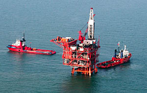 | 中國海洋石油總公司所屬的采油平臺(tái)正在渤海海面上作業(yè)。本報(bào)資料照片 新華社記者 何俊昌