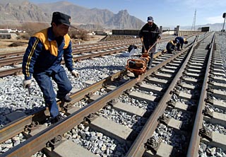 | 中鐵天路養(yǎng)護(hù)工程有限公司的工人在西藏堆龍德慶縣境內(nèi)對(duì)青藏鐵路進(jìn)行檢查和養(yǎng)護(hù)。新華社記者 覺(jué)果