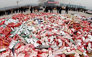 福建云霄縣生產(chǎn)的假煙,銷售網(wǎng)絡(luò)竟然能夠覆蓋大半中國!不得不令人疑竇頓生:如此令人觸目驚心的網(wǎng)絡(luò),他們是怎樣構(gòu)建的?他們?yōu)楹文軌驑?gòu)建? 假煙從位于中國東南的福建省云霄縣,長距離運輸至中國東北的黑龍江、西北的甘肅、西南的云南,中間要經(jīng)過多少環(huán)節(jié),遭遇多少次檢查,卻一直安然無恙。如果不是2006年9月份一個平淡無奇的舉報電話,這個銷售網(wǎng)絡(luò)可能依然藏匿在水面以下。[詳情] |