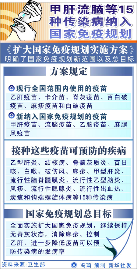 甲肝流腦等15種傳染病納入國家免疫規(guī)劃[圖]
