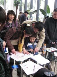 廣州首個限價房項目——保利西子灣2月16日正式接受簽約。簽約的市民臉上都露出了欣喜的笑容。圖為一家三口正在仔細地閱讀購房合同。 新華社記者:陳先鋒