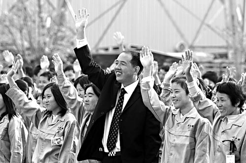 “企業(yè)家就像牧羊人,趕著成千上萬的思想不同、個性不同的羊群。為把他們趕到目的地,有時要用牧草引誘,有時要用鞭子嚇一嚇,有時要用老羊管小羊。假如你不懂得這些手段,羊群半路就散掉了。管理青年打工者尤其是這樣,如果你不用點手段,他們在外務(wù)工就很難賺到錢! 張全收從自己的打工實踐,談到對農(nóng)民工的管理時說,四面八方來的農(nóng)民工,雖說是一盤散沙,但可聚沙成塔,又能大浪推沙,成敗就在于方法。張全收苦思冥想,推出了農(nóng)民工“準(zhǔn)”軍事化管理體制,對紀律渙散的民工隊伍實行準(zhǔn)軍事化管理和培訓(xùn),去掉“懶、散、軟”的習(xí)氣,增加“勤、鉆、硬”的鋼性,讓每個農(nóng)民工都認識到,自己不是一個農(nóng)民,而是一個戰(zhàn)士,要在經(jīng)濟大潮中沖鋒陷陣。公司從專業(yè)技術(shù)到生活細節(jié)對農(nóng)民工進行系統(tǒng)的培訓(xùn),確保農(nóng)民工首先能夠在城市中立足。進入全順人力資源開發(fā)有限公司的培訓(xùn)現(xiàn)場,就會發(fā)現(xiàn)廠長兼總經(jīng)理的張全收和農(nóng)民工一起出操。隊伍整齊如一,著裝一致,腳步鏗鏘,一派“準(zhǔn)”軍事化管理的作風(fēng)。 “我是你們的老板,也就像是你們的父母。我要囑咐新來的孩子們幾句,打工并不輕松,對散漫慣了的人來說,八小時工作制,感覺比坐牢都難!”你們要做好準(zhǔn)備,第一,要講團結(jié),團結(jié)就是力量,團結(jié)才有集體的溫暖;第二,過馬路,上樓梯,進車間,要處處注意安全,你們的健康和安全,就是我的財產(chǎn)。打工,也就頭十天難過,熬過去了,你們就會成為合格的工人!另外,你們要記住,不抽煙,不喝酒,不談戀愛。因為,你們還不知道什么是愛,由于失戀尋死覓活,或討好對方花干血汗錢,都不值得!” 在全順公司,我們耳聞目睹了張全收和工人一起出操后的例行訓(xùn)話。這些話,乍聽,不那么順耳。可隊伍解散,問工人們的感受,他們都說,老板講得既親切又實在,是為俺好。 談及當(dāng)老板的感受,張全收勁頭兒上來了:“現(xiàn)在我感覺,自己就像一支特種部隊的司令官,我愛我這支一萬多人的隊伍,他們能打硬仗,無論派到東莞、廈門還是留在深圳,無論是從事哪個工種,擔(dān)負什么樣的任務(wù),他們都招之能來,來之能戰(zhàn),戰(zhàn)之能勝!” 玩具廠的經(jīng)理小張是他的堂弟,當(dāng)著記者的面,張全收說:“你雖然工作不錯,可為什么不守公司定的規(guī)矩,留長發(fā)。事不過三,今天我是第三次批評你了,你從現(xiàn)在起,停職反省! 他說到做到,上午,我們在公司一間小房里看到了在那里反省的小張。小伙子的長發(fā)已改成了平頭。不一會兒,張全收便接到玩具廠港方老總的電話,為這位經(jīng)理求情,說小伙子工作很出色,崗位離不了他的啦。張全收說:“我們家鄉(xiāng)的諺語說,好孩不用打,好面不能撒。我今天之所以給他一個難堪,也是為今后隊伍好帶,這對你的事業(yè)是有好處的啦!” 張全收向我們笑著說,帶工人,也和帶部隊一樣,要賞罰嚴明,恩威并重。 記者看到農(nóng)民工的食堂干凈明亮,連排座椅筆直整齊,主食是米飯,菜有葷有素有湯。工人宿舍每間一溜六張上下鋪床,被子疊的方方正正,物品擺放整整齊齊。工人們每個宿舍都選出一位寢室長,每周都進行整理內(nèi)務(wù)比賽和衛(wèi)生檢查評比,獲優(yōu)秀獎的寢室公司還頒發(fā)獎金。 “我們的工人是最棒的”。每當(dāng)向企業(yè)推介全順公司的工人時,張全收說得最多的就是這一句話。這話既滿懷自信又飽含深情。