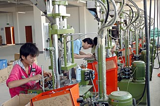 | 一家南寧的臺(tái)資企業(yè)工人在操作機(jī)器。新華社記者 張周來(lái)