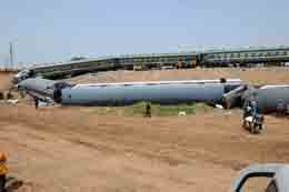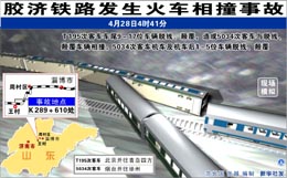 28日凌晨4時48分,北京至青島的T195次下行到膠濟線周村至王村區(qū)間時,客車尾部第9節(jié)至第17節(jié)車廂脫軌,與上行的煙臺至徐州的5034次旅客列車相撞,致使機車和五節(jié)車廂脫軌,造成重大人員傷亡。到晚間發(fā)稿時為止,已死亡70人,傷416人。其中有4名法國旅客受傷! 記者在現(xiàn)場看到,從北京至青島的T195次列車有8節(jié)車廂傾覆到鐵路一旁。與其發(fā)生碰撞的5034次從煙臺至徐州的火車,至少有4節(jié)車廂脫軌。 淄博中心醫(yī)院副主任醫(yī)師徐東譚14時在現(xiàn)場接受記者采訪時說,他從早6時就來到現(xiàn)場,負責將傷員分派到各家醫(yī)院。已有110多名傷員經他的手被分派往多家醫(yī)院救治。他說,傷員多是面部受傷、受撞擊骨折等。 據初步調查顯示,這是一起人為責任事故。鐵道部已作出決定,免除濟南鐵路局黨政主要負責人的職務,接受審查,聽候處理。 據了解,膠濟線周村至王村區(qū)間限速為每小時80公里。北京至青島的T195次下行通過時達到每小時131公里。事故詳細原因正在調查中。
