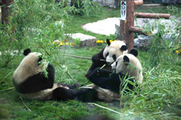 攝 | 咔!咔!咔! 當(dāng)裝有八個(gè)奧運(yùn)大熊貓籠子的拖車從首都機(jī)場(chǎng)貨機(jī)停機(jī)坪緩慢地開(kāi)到貨站口,在貨站口守候了近一個(gè)小時(shí)的40余名清華大學(xué)大熊貓協(xié)會(huì)的志愿者們紛紛舉起了相機(jī)!翱此鼈兌嗫蓯(ài)!”一名女志愿者一邊說(shuō),一邊把手中的相機(jī)對(duì)準(zhǔn)了最先“出鏡”的“翠翠”和“朵朵”。 來(lái)自四川臥龍中國(guó)保護(hù)大熊貓研究中心的八只大熊貓經(jīng)過(guò)兩個(gè)小時(shí)30分的空中飛翔后,于5月24日下午4點(diǎn)23分到達(dá)首都機(jī)場(chǎng)。由于臥龍是地震災(zāi)區(qū),這八只大熊貓被看做是特殊的“受災(zāi)轉(zhuǎn)移群眾”。 晚上6點(diǎn)10分,八只臥龍熊貓寶寶經(jīng)過(guò)成都到北京的漫長(zhǎng)旅程,終于到達(dá)北京動(dòng)物園新熊貓館。記者看到,剛剛落成的新熊貓館全面進(jìn)行了清掃和消毒,并在運(yùn)動(dòng)場(chǎng)里設(shè)立了棲架、木踏板、游玩的水池,鋪種了草坪。運(yùn)動(dòng)場(chǎng)背景是美麗壯觀的臥龍山區(qū)美景,動(dòng)物棲架的立柱上畫有藏、羌族風(fēng)格的圖案。 據(jù)北京動(dòng)物園有關(guān)人士介紹,新建的大熊貓館內(nèi)七間獸舍、四個(gè)運(yùn)動(dòng)場(chǎng)全面進(jìn)行了清掃和消毒。每間獸舍內(nèi)還安裝了空調(diào)和錄像監(jiān)控設(shè)備。八只大熊貓每天有200公斤來(lái)自河南的新鮮竹子和40公斤鮮嫩竹筍及蘋果、胡蘿卜等食品供給。 6點(diǎn)15分,剛剛進(jìn)入陌生新家的八只奧運(yùn)熊貓寶寶開(kāi)始大吃竹葉,一點(diǎn)也沒(méi)有“認(rèn)生”的感覺(jué),好像就在臥龍家鄉(xiāng)一樣。記者看到,最能吃的是“福娃”,它竟然撇開(kāi)了嬉戲打鬧的兄弟姐妹獨(dú)自抱著竹子大嚼大啃,一點(diǎn)兒也不在意玻璃幕墻外記者們頻頻閃爍的閃光燈。 據(jù)北京動(dòng)物園介紹,經(jīng)過(guò)一段適應(yīng)期后,預(yù)計(jì)6月底之前,這批臥龍大熊貓將正式與北京游客見(jiàn)面,屆時(shí)動(dòng)物園還將開(kāi)展為災(zāi)區(qū)野生動(dòng)物保護(hù)區(qū)重建的募捐活動(dòng),有能力的市民可認(rèn)養(yǎng)大熊貓。 |