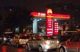一個中石油的加油站擠滿了想在油價上漲前加油的轎車。本報記者:劉潺