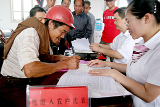 | 瑞安市農(nóng)業(yè)合作銀行的工作人員為農(nóng)戶辦理貸款手續(xù),首批12戶低收入農(nóng)戶得到了23.8萬(wàn)元的無(wú)息創(chuàng)業(yè)貸款。(資料照片) | 如何解決貧困農(nóng)民融資難,貧困地區(qū)一直苦無(wú)良策。近年寧夏回族自治區(qū)在部分貧困鄉(xiāng)村探索建立村級(jí)發(fā)展互助資金,各級(jí)財(cái)政先期無(wú)償注入資本金,通過(guò)農(nóng)戶自愿入股方式吸收聚集民間資本,以小額信貸方式有償發(fā)放,既緩解了貧困農(nóng)戶發(fā)展生產(chǎn)資金短缺的問(wèn)題,又創(chuàng)新了財(cái)政扶貧資金的使用和管理方式。 寧夏扶貧辦副主任馬崇林向記者算了一筆賬,農(nóng)民使用互助資金需支付占用費(fèi),支付率低于同期農(nóng)村信用社小額支農(nóng)貸款利率。年終決算,占用費(fèi)收入的40%滾入本金,60%用于分紅和提取管理費(fèi)用。如果能夠形成良性循環(huán),可以利用的資金將會(huì)越來(lái)越多,互助金也將成為更多貧困農(nóng)民的“草根銀行”。