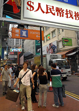 香港街頭人民幣兌換點隨處可見。新華社記者 王小川