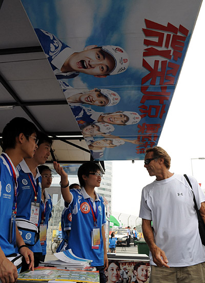 “小伙子,去朝陽附近的燕莎怎么走?”9日上午8點(diǎn)半左右,在阜成門地鐵站,一對(duì)來北京旅游的老年夫妻有些茫然地向兩位年輕的志愿者問道。 正忙著搭建服務(wù)臺(tái)的兩名小伙子聞聲立刻停住手中的活兒,一位稍高的男生微笑著回答道:“你們先坐一站到復(fù)興門轉(zhuǎn)一號(hào)線,再坐到國貿(mào)轉(zhuǎn)十號(hào)線,往北坐到亮馬橋站就到燕莎了!”正當(dāng)兩位老人道謝時(shí),另一位志愿者又補(bǔ)充道,“十號(hào)線列車內(nèi)的空調(diào)溫度在16到20攝氏度,請(qǐng)您注意保暖!”兩位老人點(diǎn)頭含笑地離開。 記者采訪后了解到,這兩位志愿者都是北方交通大學(xué)計(jì)算機(jī)系大二的學(xué)生,稍高那位是北京人,另一位則家在山西,工作范圍就是地鐵阜成門站。在他倆剛剛搭好的服務(wù)臺(tái)上,記者發(fā)現(xiàn)除了有一疊北京交通地圖、奧運(yùn)健康手冊(cè)等,還有五張手寫的極其工整的附近公交站臺(tái)換乘信息,“這里有前幾任地鐵志愿者留下來的,也有我們?cè)诮邮軉栐冞^程中逐漸補(bǔ)充的,為的是能給前來咨詢的人們提供更為準(zhǔn)確的服務(wù)!睋(jù)山西小伙子介紹,像他們這種地鐵志愿者一般每天有兩班,一班從上午9點(diǎn)到下午2點(diǎn),另一班則從下午2點(diǎn)到晚上7點(diǎn)!9號(hào)是我們?cè)诟烦砷T站服務(wù)的最后一天、最后一班崗,之后我們將繼續(xù)進(jìn)行其他志愿工作! 就在與記者交流的不到半個(gè)小時(shí)時(shí)間里,先后有數(shù)十位民眾前來尋求各種信息服務(wù)!拔覀兠咳嗣堪啻蠹s能為200位民眾解疑釋惑,大部分是外地人,也有外國朋友前來咨詢!北本┠泻(duì)記者說,為了能夠準(zhǔn)確回答這些外國友人的疑問,培訓(xùn)的時(shí)候著實(shí)刻苦練習(xí)了不少英語口語呢,“比當(dāng)年考四級(jí)還要認(rèn)真!”但結(jié)果大部分來問路的外國朋友都會(huì)不少漢語,英語并沒有在指路上發(fā)揮太大的作用。反而是在檢票或安檢時(shí),地鐵工作人員常常會(huì)找他們幫忙與老外溝通,“但不管怎么說,練習(xí)口語還真是派上了不少用場,無論是指路還是其他工作,我們都是在為北京奧運(yùn)作出自己的一點(diǎn)點(diǎn)貢獻(xiàn)!我們能夠參與到其中,感覺非常幸運(yùn)和光榮!” 為了不影響他們的工作,記者準(zhǔn)備在詢問其姓名后離開,但兩位可愛的男孩吐了吐舌頭,靦腆地笑了,“我們很普通啊,我們的名字就叫志愿者!”說完,他們就再次投入了緊張的工作當(dāng)中。