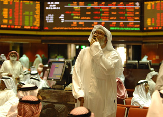 9月15日,在科威特股票交易所,一股民仰頭觀望股票交易價(jià)格變化。當(dāng)天,科威特股市下跌488點(diǎn),創(chuàng)下了一天內(nèi)降幅最高紀(jì)錄。新華社發(fā)(努法攝)