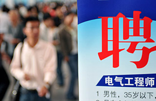| 9月20日,求職者在人才招聘會上一展臺前走過。新華社記者 高增雙