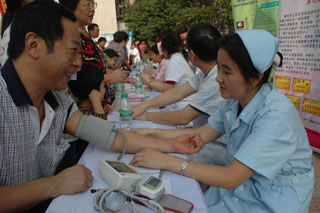 圖為江北區(qū)社區(qū)服務(wù)機構(gòu)工作人員為轄區(qū)居民免費體檢。 自2007年開始,江北區(qū)每年投入1050萬元,用于社區(qū)衛(wèi)生服務(wù)機構(gòu)基礎(chǔ)設(shè)施建設(shè)和社區(qū)衛(wèi)生服務(wù)人才培養(yǎng)。這個區(qū)率先在全市推出城鄉(xiāng)居民公共衛(wèi)生服務(wù)券(卡)制度和城鄉(xiāng)衛(wèi)生服務(wù)中心藥品“零差率”銷售,向城鄉(xiāng)居民免費提供計劃免疫、兒童保健和圍產(chǎn)期保健服務(wù),有效緩解了城鄉(xiāng)居民群眾“看病貴”的問題。 |