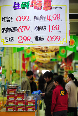 10月CPI漲幅回落0.6個(gè)百分點(diǎn)。這是今年5月以來(lái),中國(guó)CPI同比漲幅連續(xù)第六個(gè)月回落。其中食品價(jià)格環(huán)比下降0.9%。11月11日,市民在安徽滁州一家超市內(nèi)購(gòu)物。新華社記者