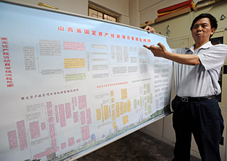 山西省發(fā)改委固定資產(chǎn)投資管理處處長胡景善在介紹《流程圖》。本報記者 燕雁 攝 |
