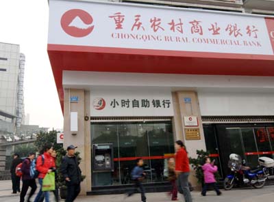 12月1日,幾名重慶市民從重慶農(nóng)村商業(yè)銀行的一個(gè)儲(chǔ)蓄所前經(jīng)過。 日前,重慶農(nóng)村商業(yè)銀行發(fā)布消息稱,重慶農(nóng)村商業(yè)銀行將在3年時(shí)間里,投放200億元貸款,重點(diǎn)支持重慶3000家中小企業(yè)做大做強(qiáng)。新華社記者:劉潺