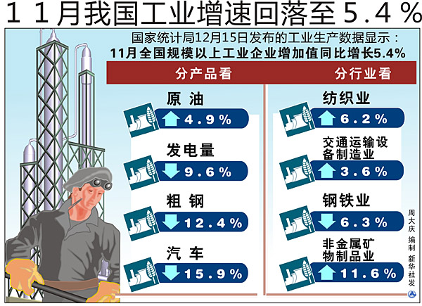 11月我國工業(yè)增速回落至5.4%