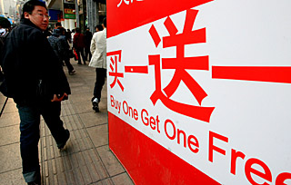走進上海各大商場,“滿300送300券”“買300折150元”的海報滿目皆是,人流如浪潮般涌來,促銷員高分貝的“特賣”聲音敲擊耳膜,讓人們暫時忘記了正在波及全球的金融風暴。 試衣間門口、收銀臺前、電梯上下,“排隊”成為無一例外的“規(guī)定動作”。在上海梅龍鎮(zhèn)廣場,一名等待試衣的女孩氣喘吁吁,手里抱著大衣,肩上搭著褲子,“排一次隊不容易,索性把看上的衣服都帶進去一次試好。”她說。 上海南京路眾多商廈自11月上旬起啟動“百日營銷”活動,用明扣或打折送券等方式擴大銷售。12月6日、7日兩個雙休日,新世界商場銷售額一舉突破億元大關,僅7日接待客流接近50萬人次,逼近國慶黃金周日最高客流,日銷售額突破5800萬元。第一百貨、永安百貨、巴黎春天等商場也紛紛展開攻勢,各類營銷活動此起彼伏,面對不息的人流,部分店家只好采用“進一批,出一批”的方法分批入場。全場買贈的營銷策略也吸引了不少男士,“平日里不愛逛商場,但這次傾巢而出也是明智之舉,實惠啊!币蝗簳r尚男士穿梭在人群里,格外顯眼。