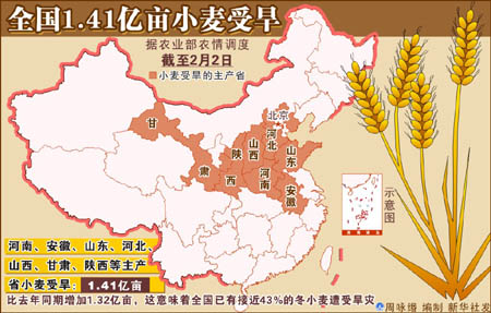 春節(jié)過后,小麥即將進(jìn)入返青期。為了打贏抗旱保苗奪豐收這場(chǎng)硬仗,河南提出要集中全力,在未來10天時(shí)間,把全省7000多萬畝小麥再普遍澆灌一遍。 根據(jù)最新統(tǒng)計(jì),河南受旱面積已達(dá)到4519萬畝,有50萬畝麥田不同程度地出現(xiàn)麥苗枯死現(xiàn)象。從2008年10月24日到2009年2月1日,全省平均降水量?jī)H為10.7毫米,較常年同期減少近八成。為應(yīng)對(duì)持續(xù)發(fā)展的嚴(yán)重旱情,河南省防汛抗旱指揮部2月1日宣布,將原來的Ⅲ級(jí)抗旱應(yīng)急響應(yīng)升為Ⅱ級(jí)。當(dāng)前,麥田旱情持續(xù)發(fā)展,受旱面積之大,時(shí)間之長(zhǎng),程度之重,都為新中國(guó)成立以來所少有。 2日下午,河南再次召開抗旱澆麥奪豐收電視電話會(huì),對(duì)下一階段的抗旱澆麥工作作出部署:要爭(zhēng)取用10天時(shí)間,把全省7000多萬畝小麥普遍澆灌一遍,堅(jiān)決打贏抗旱澆麥奪豐收的攻堅(jiān)戰(zhàn)。會(huì)議要求各級(jí)各部門要立即行動(dòng)起來,有澆水條件的要加快進(jìn)度,做到早澆快澆;要搞好調(diào)查研究,澄清自流灌區(qū)、井灌區(qū)和水源條件缺乏的岡丘地區(qū)等不同地域的可灌面積、已灌面積,做到心中有數(shù)。對(duì)有水源但水利條件差的地方,要通過車?yán)藫?dān)等方式,爭(zhēng)取多澆一畝麥,多保一畝苗。同時(shí),對(duì)于國(guó)家和省級(jí)撥付的5億多元抗旱資金要用好,確保及時(shí)到位,而且要從本級(jí)財(cái)政中爭(zhēng)取多拿出一些資金,支持抗旱澆麥奪豐收工作,確?购禎阐湵XS收的資金需要。必要時(shí),動(dòng)員組織機(jī)關(guān)、工礦企業(yè)、抗旱服務(wù)隊(duì)、部隊(duì)為缺水群眾送水,確保旱區(qū)群眾基本生活用水需要。