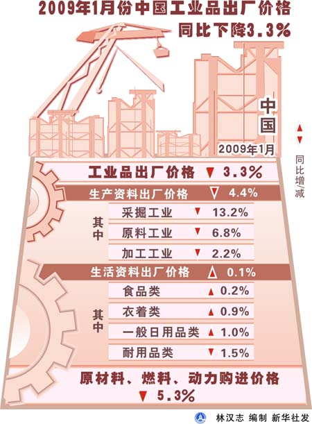 一是美國金融危機(jī)引起全球?qū)嶓w經(jīng)濟(jì)快速下滑,國際市場(chǎng)原油、礦石、糧食等基礎(chǔ)性產(chǎn)品價(jià)格顯著下降,致使我國此類大宗產(chǎn)品進(jìn)口價(jià)格明顯下降,進(jìn)而引起去年持續(xù)處于高位的生產(chǎn)資料價(jià)格下降較多,并通過產(chǎn)業(yè)鏈條逐漸往中下游傳導(dǎo),導(dǎo)致主要類別產(chǎn)品價(jià)格的全面走低。比如,1月份,國際市場(chǎng)上非能源價(jià)格同比下降25.5%,降幅比12月份擴(kuò)大1.2個(gè)百分點(diǎn);金屬價(jià)格下降41.4%,擴(kuò)大5個(gè)百分點(diǎn),其中鋁價(jià)下降42.2%,擴(kuò)大5.3個(gè)百分點(diǎn)。