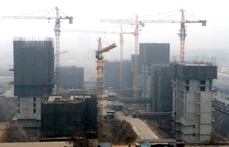 河北2008年商品房投資與銷售量“一增一減”。圖為石家莊市槐安路與談固南大街交叉口處在建的樓群(2月18日攝)。新華社記者