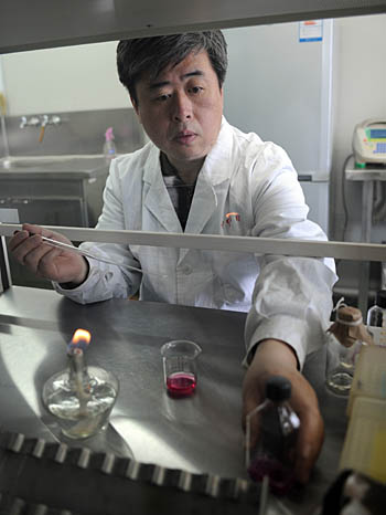 國家首批生物產(chǎn)業(yè)基地之一的長春市,著力打造實驗動物繁育與實驗中心、基因工程藥物實驗中心、生物酶工程技術(shù)中心、疫苗研發(fā)工程中心、藥物篩選中心、中藥制劑工程研究中心、中藥前處理公共平臺、輻照滅菌裝置中心、食品藥品檢驗中心、醫(yī)藥科技信息咨詢服務中心等十大公共平臺。 圖為東北師范大學教育部農(nóng)業(yè)與醫(yī)藥基因工程研究中心、藥物基因和蛋白篩選國家工程實驗室的工作人員在進行藥物篩選實驗。 | |