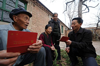 | 2008年11月11日,河北省青縣合作養(yǎng)老聯(lián)合會耿官屯村分會的會長潘炳君(右一)在解答村民關(guān)于合作養(yǎng)老的咨詢。新華社資料照片 | 為了抵御國際金融危機(jī)對我國經(jīng)濟(jì)帶來的沖擊和不利影響,中央及時推出了“擴(kuò)內(nèi)需、保增長、調(diào)結(jié)構(gòu)”的應(yīng)對方針。與此相適應(yīng)的是,積極的財政政策和適度寬松的貨幣政策在2008年底應(yīng)時而出,結(jié)構(gòu)性減稅已然成為2009年稅收政策的一大亮點。 采訪中,多位專家學(xué)者均表示,在2009年甚至稍后的一段時間里,這種“反周期擴(kuò)張”的財政政策將在總量上與貨幣政策密切配合,同時優(yōu)化財政支出結(jié)構(gòu);與此同時,稅制改革將繼續(xù)推進(jìn),結(jié)構(gòu)性減稅將作為稅改重點。